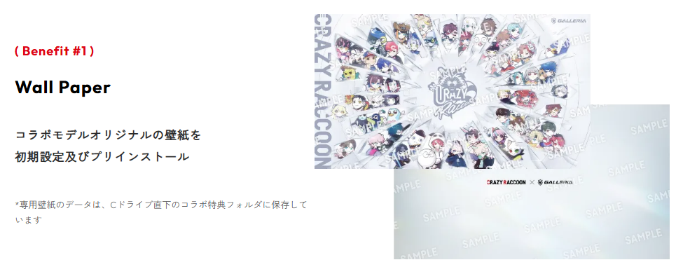 多くのコラボPCは「オリジナル壁紙」や「システムボイス」、「オリジナル梱包箱」あたりが特典となっています。