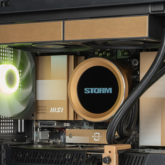 STORMとMSIが提携して作られたBTOPCで、PCケースやCPUクーラーにMSI製のパーツをふんだんに搭載。