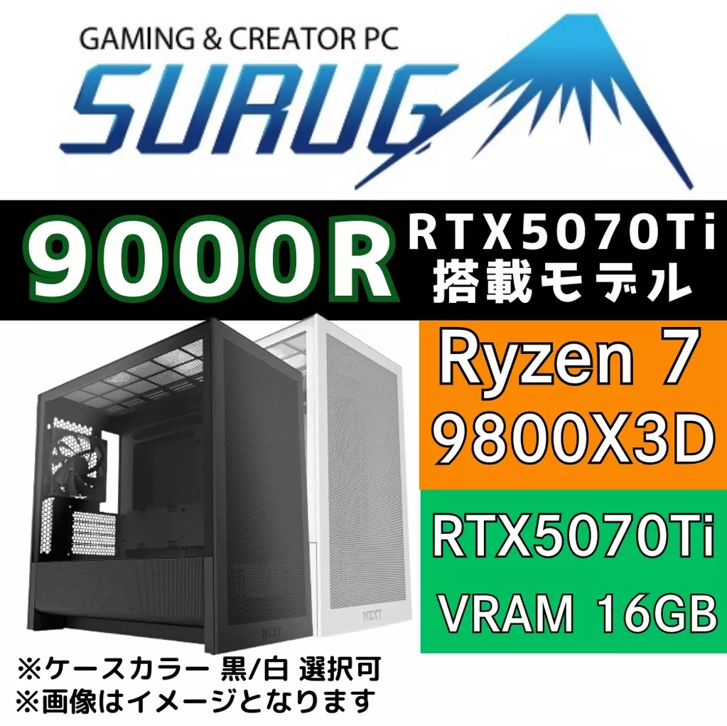 | SURUGA 9000R 価格:319,800円 保証:1年間 | Ryzen7 9800X3D RTX5070Ti メモリ 32GB SSD 1TB |